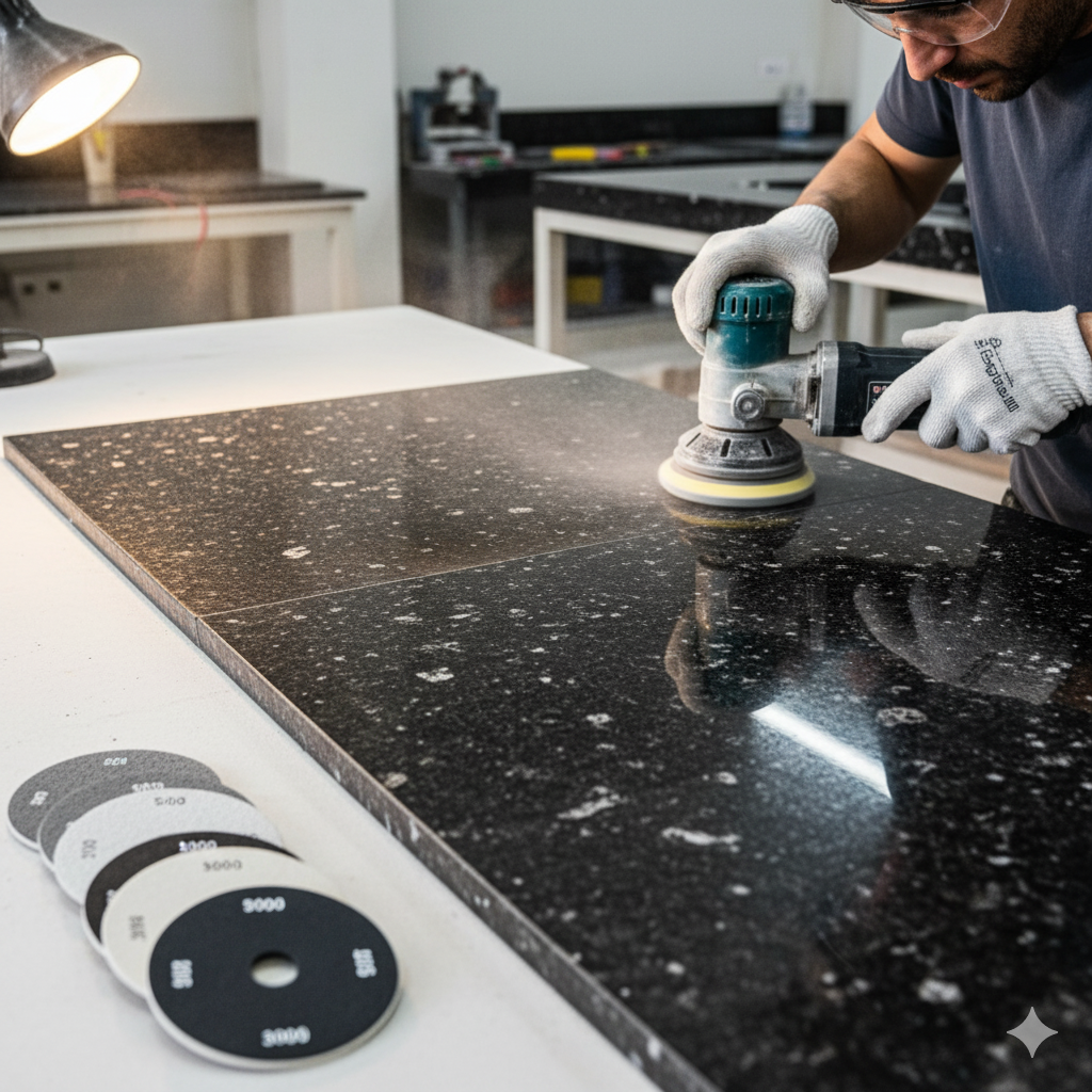 تلميع الجرانيت الجاف: الخطأ القاتل الذي يقع فيه أغلب الحرفيين وكيف تتجنّبه خطوة بخطوة