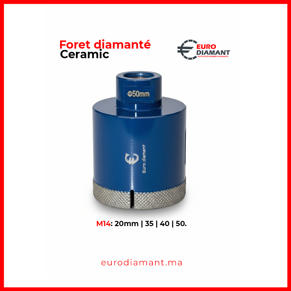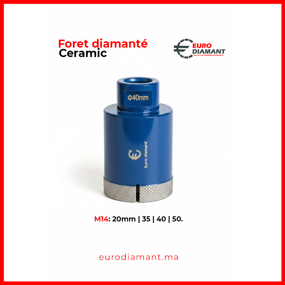 Dans l’installation de carrelage haut de gamme, le perçage doit être parfait, rapide, et absolument sans éclat. La gamme de forets diamantés M14 bleus d’Euro Diamant est spécialement conçue pour répondre à cette exigence, ciblant le céramique, le grès cérame, et la porcelaine. Ces forets représentent la solution idéale pour réaliser des trous nets pour la robinetterie, les sorties de douche, ou les boîtiers électriques, grâce à leur conception de pointe.