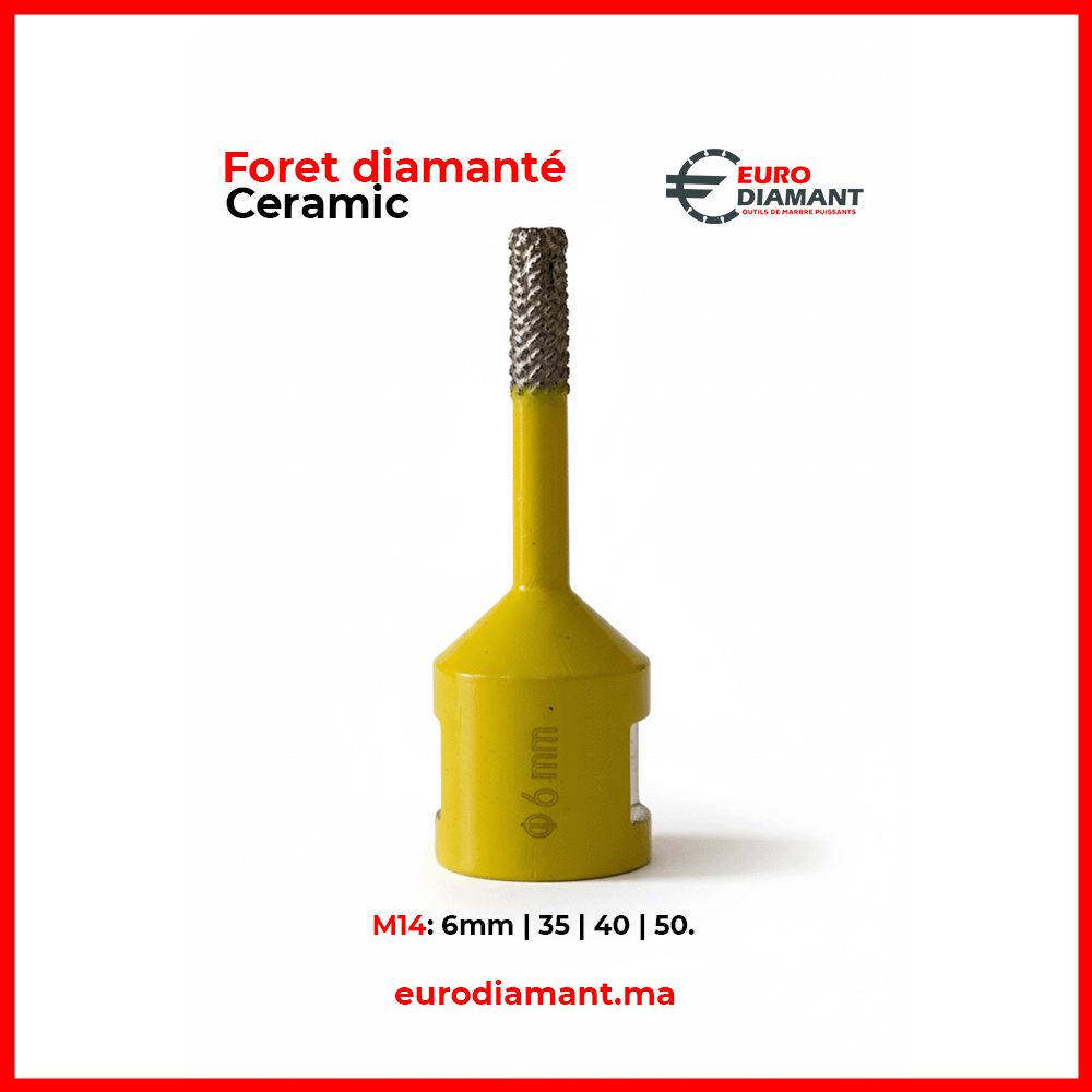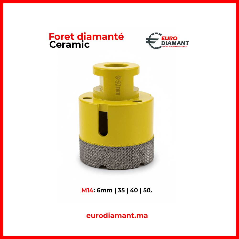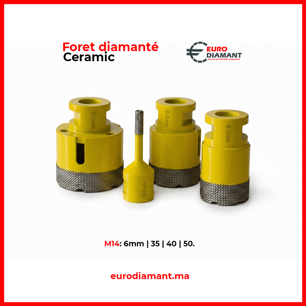 Foret Diamanté M14 Spécial Céramique & Grès Cérame (6mm – 50mm) | Perçage Précision Sans Éclat | Euro Diamant Maroc